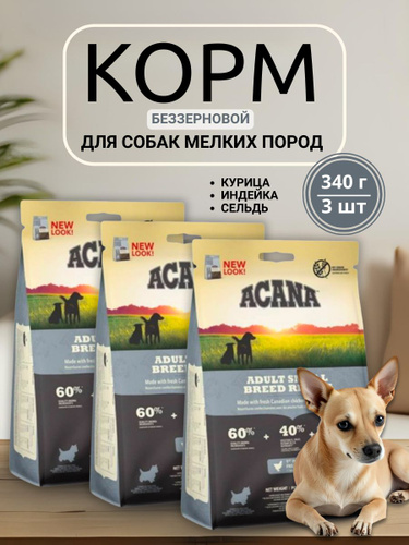 Корм для домашних животных ACANA Adult Small Breed Recipe, для собак, 340 г х 3 шт 2087/23350/3шт