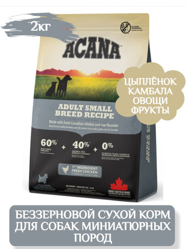 ACANA ADULT SMALL BREED Беззерновой корм для собак мелких пород, 2кг