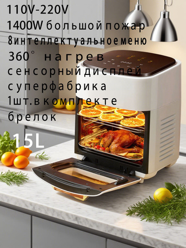 Аэрогриль Аэрогриль 15 л, 1400 Вт, для семьи 4-5 человек, 8 режимов приготовления: жарка курицы, картофеля фри, пиццы, креветок, выпечки и многого другого, белый