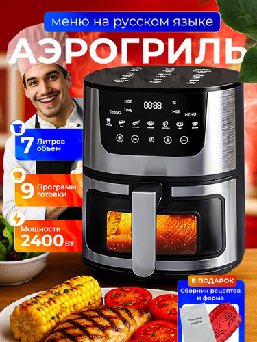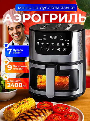 Аэрогриль электрический, аэрофритюрница, 7 литров, 2400Вт