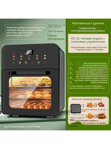 Аэрогриль ;аэрогриль электрический ;для аэрогриля ;решетка для аэрогриля ;формы для аэрогриля ;нержавеющая сталь ;Визуальный ;умный ;домашний ;Большая емкость-9382c9fc2f18, черный