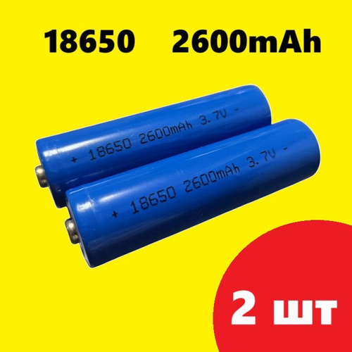 Аккумулятор (2 шт.) Li-ion 18650 2600mAh 3.7V синяя батарейка с пимпочкой налобный фонарь 3,7 вольт запчасти для фонарика, выпуклый плюс