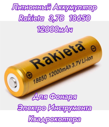 Аккумулятор батарейка 12000mAh Li-ion 18650 Rakieta, аккумулятор 4V для налобного фонаря , шуруповерта, квадрокоптера, прицела ночного видения (1 штука ) 3,7V литиевый