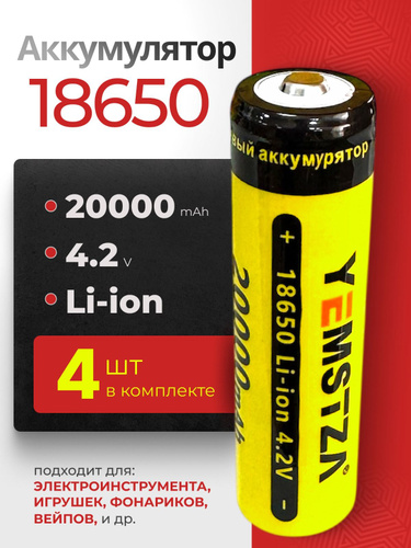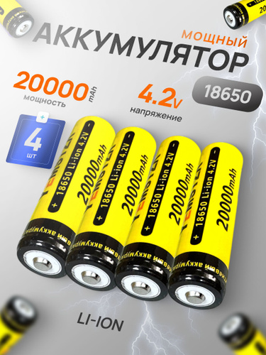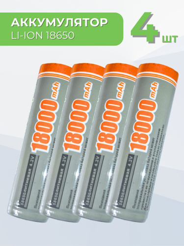 Батарейки аккумуляторные 18650 4 шт , аккумулятор 4.2V 18000mAh Li-ion для налобного фонаря , шуруповерта, триммера, универсальный