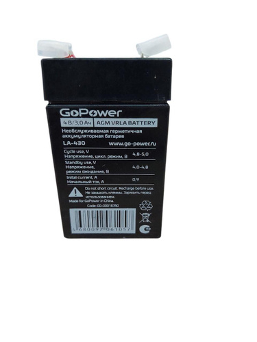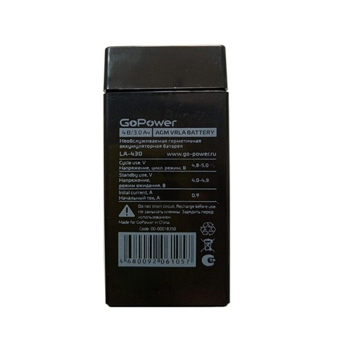 Кислотный аккумулятор GoPower LA-430 4v 3Ah (74x44x32mm) , 1шт.