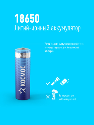 Аккумулятор Космос 18650 LI-ion 3400 mAh 1BL с защитой KOC18650Li-ion34PBL1