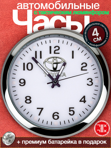 Часы в машину автомобильные на панель светящиеся с белым циферблатом Toyota