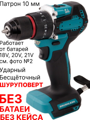 Шуруповерт БЕЗ аккумулятора бесщёточный безударный дрель совместим с АКБ 18V, 20V, 21V