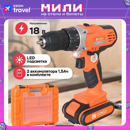 Шуруповерт аккумуляторный 18V, 20 Нм, 2 аккумулятора 2 Ач, СОЮЗ ДШС-18-2К-ПРОМО