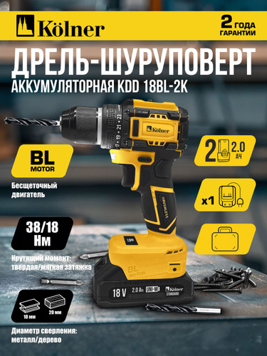 Шуруповерт аккумуляторный бесщеточный KDD 18BL-2K 18V UNI-M Standard, 18В, 38Нм