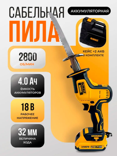 Пила сабельная аккумуляторная 18 V с набором 2 АКБ