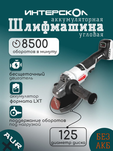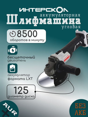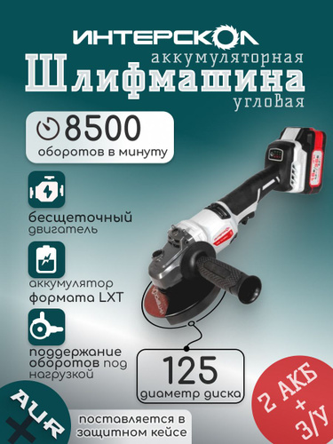 Аккумуляторная угловая шлифмашина ИНТЕРСКОЛ УШМ-125/36В, 36 В , 125 мм, 8500 об/мин, без АКБ и ЗУ