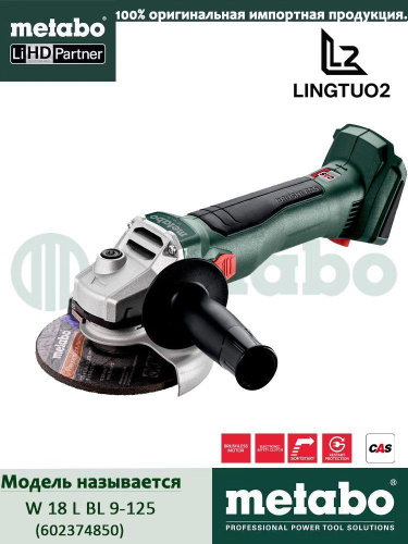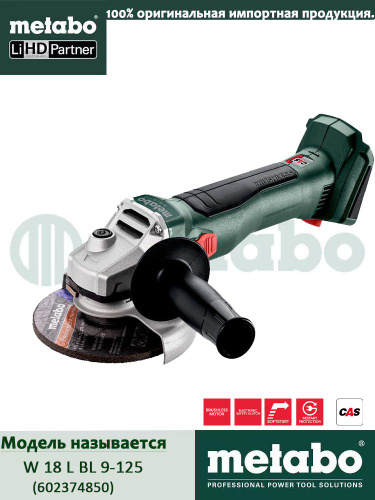 Аккумуляторная болгарка Metabo W 18 L BL 9-125 18 В без аккумулятора и зарядного устройства, в коробке