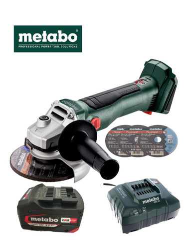 Болгарка Аккумуляторная Metabo W 18 L BL 9-125, 18 B, 125мм, 10000 Об/мин, 1 АКБ, 5.2 Ач, 3 Круг отрезной по металлу