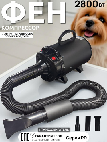 Фен компрессор для собак и кошек с обогревом и регулировкой мощности 2400 Вт