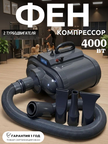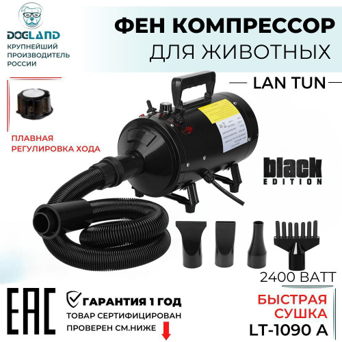 LanTun Фен компрессор турбо сушка для животных: кошек, собак и других питомцев, 2 турбомотора мощность 2900 Вт 4 насадки Модель: LT-1090C