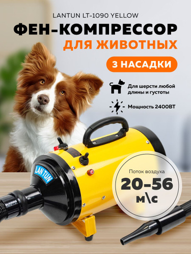 Фен компрессор для собак и кошек с обогревом и регулировкой мощности 2400 Вт, Lantun LT-1090 Yellow) / Фен для собак, 3 насадки в комплекте