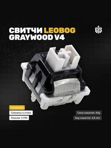Линейные механические переключатели для клавиатуры (свитчи) Leobog Graywood V4 (45 штук), смазаны, 5-pin, 40 грамм