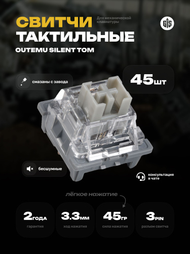 Механические переключатели (бесшумные свитчи) Outemu Silent Tom 45 штук, тихие, тактильные, 3-pin, смазаны, 45 грамм