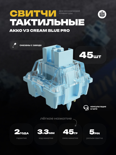 Механические переключатели для клавиатуры (свитчи) Akko V3 Cream Blue PRO (Тактильные) 45 штук, тактильные, смазаны, 5-pin, 50 грамм