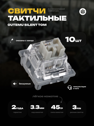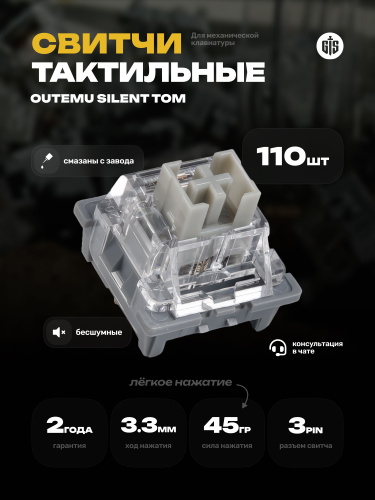 Механические переключатели (бесшумные свитчи) Outemu Silent Tom 110 штук, тихие, тактильные, 3-pin, смазаны, 45 грамм
