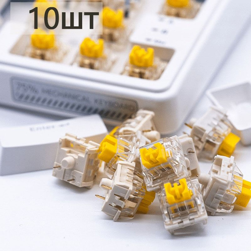 Механические переключатели (свитчи),3-pin, линейные, смазаны, желтый, 10 штук