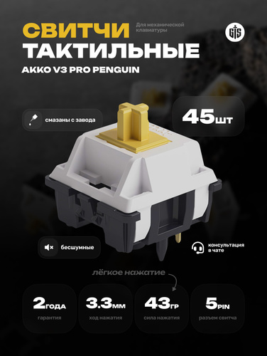 Механические переключатели (свитчи) Akko Penguin (Тактильные, тихие, бесшумные) 45 штук, смазаны, 5-pin, 43 грамм