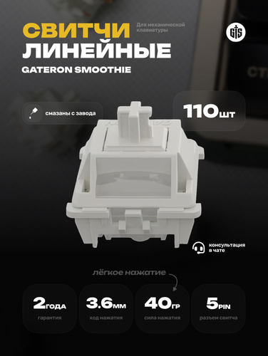 Механические линейные переключатели (свитчи) KS-3 Gateron Yellow Milky Pro 10 штук линейные, смазаны, 5-pin, 47 грамм