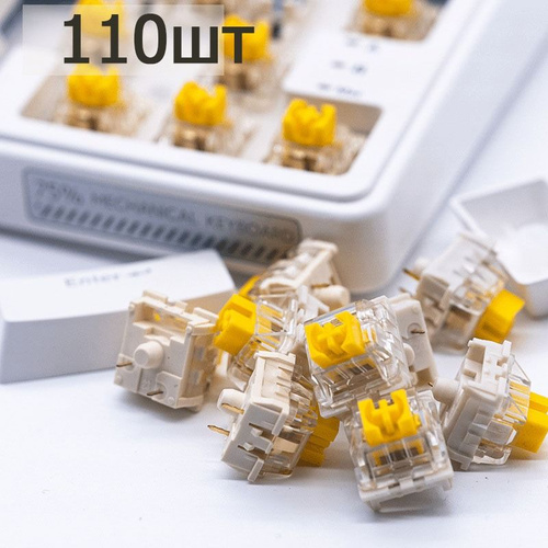 Механические переключатели (свитчи),3-pin, линейные, смазаны, желтый, 45 штук