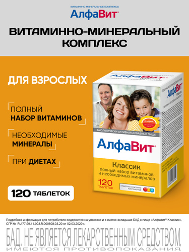 АлфаВит Классик 120 таблеток витаминный комплекс для всей семьи