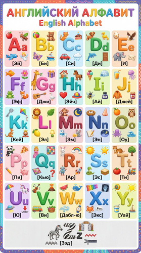 Постер "Алфавит, английский язык" - 50х90см - классика