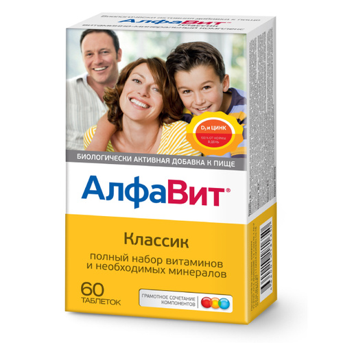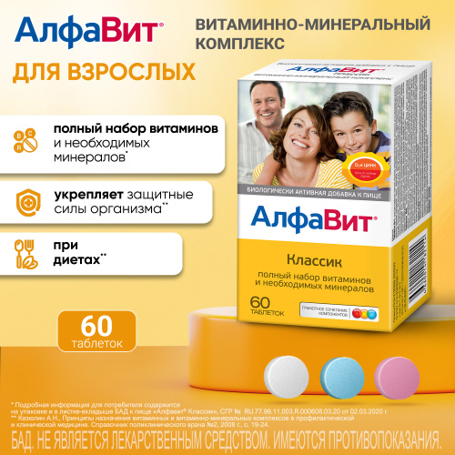 АлфаВит Классик 60 таблеток витаминный комплекс для всей семьи