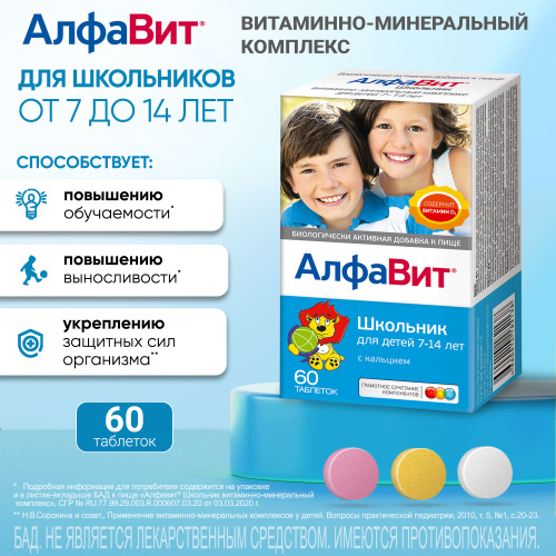 Мультивитамины АлфаВит "Школьник", 2 упаковки по 60 таблеток, КОМПЛЕКТ ИЗ 2х упаковок