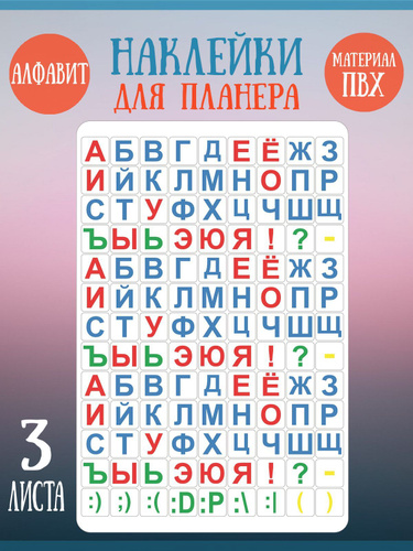 Набор наклеек RiForm "Цветной Русский Алфавит - Классика", 3 листа