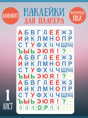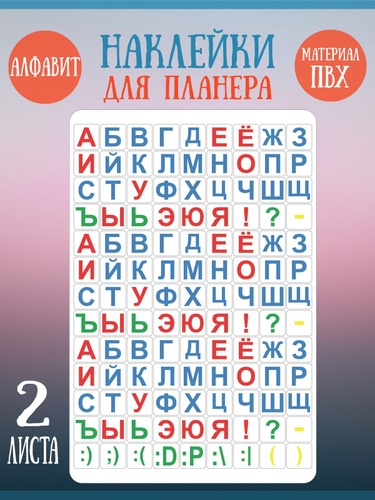 Набор наклеек RiForm "Цветной Русский Алфавит - Классика", 2 листа