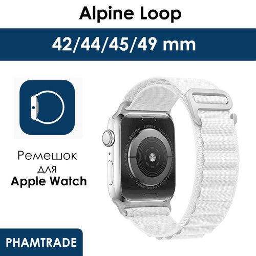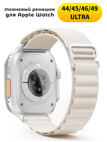Ремешок для смарт-часов, фитнес-браслета Apple Watch Series 1 2 3 4 SE 5 6 7 8 ultra ультра альпийская петля тканевый браслет alpine loop Эпл Вотч 42/44/45/49 мм, белый розовый