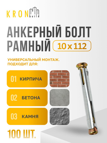 Анкер рамный KRONbuild M10x112 мм, дюбель для бетона, кирпича и камня, оцинкованный, 100 шт