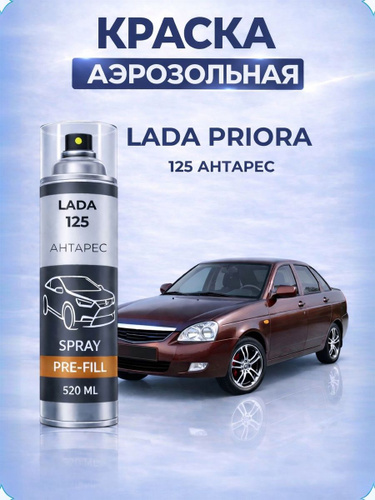 Краска LADA PRIORA, код 125, АНТАРЕС, автомобильная эмаль FixPaint Spray в аэрозольном баллончике 520 мл