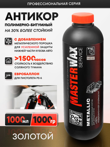Антикоррозийное покрытие для авто, MasterWax Metallic / Мастика битумная, для днища кузова, антишум, 1л