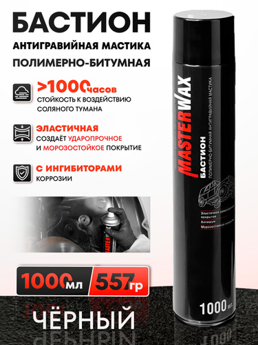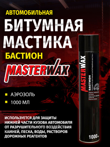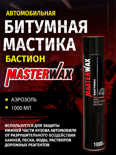 Битумная мастика MasterWax БАСТИОН, жидкие подкрылки антикор днища аэрозоль / Антикоррозийное покрытие для автомобиля колесные арки, 1000мл/557гр