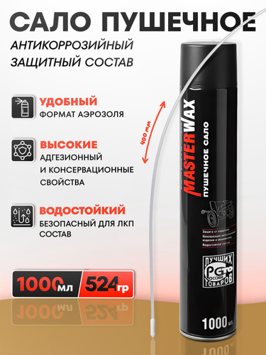 Пушечное сало, MasterWax, антикор для скрытых полостей, антикоррозийное покрытие, аэрозоль, 1000мл/524гр