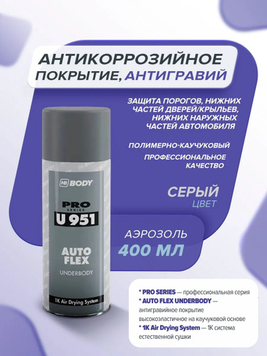 Антикоррозийное покрытие для авто 400 мл СЕРЫЙ аэрозоль / HB BODY 951 / шумоизоляция, мастика антикор для днища, арок и кузова, защита от ржавчины
