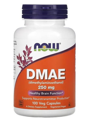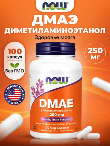DMAE (диметиламиноэтанол) NOW ДМАЕ 250 мг, ноотроп, 100 растительных капсул