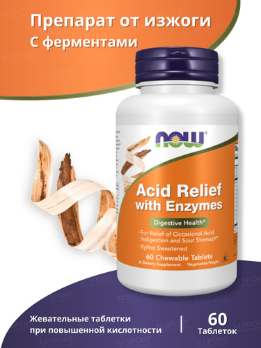 Препарат от изжоги с ферментами Нау Фудс Эсид Релиф 60 таблеток / Now Foods Acid Relief with Enzymes
