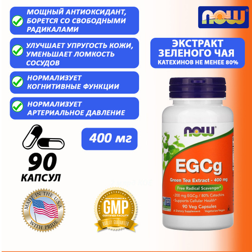 Now Foods, EGCg, ЭГКГ, экстракт зеленого чая, 400 мг, 90 вегетарианских капсул