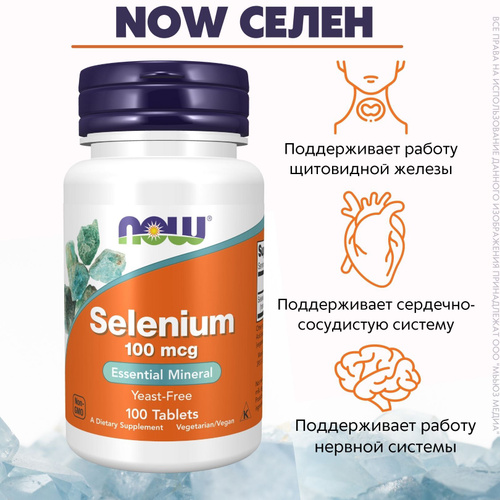 NOW Селен 100 мкг 100 таб (SELENIUM 100mcg 100 TABS)