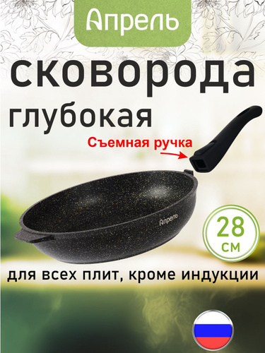 Сковорода "Апрель" 28см с антипригарным покрытием со съемной ручкой, можно мыть в посудомоечной машине