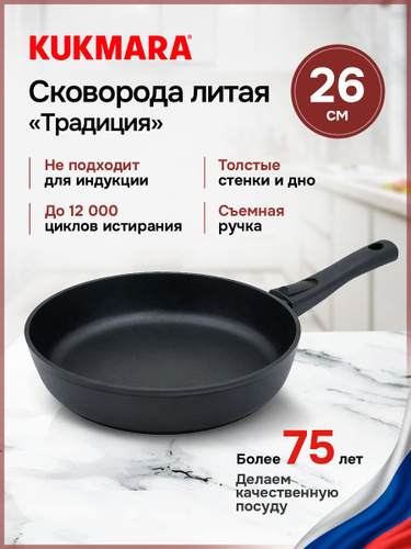 Kukmara Сковорода Традиция, 26 см, без крышки, со съемной ручкой