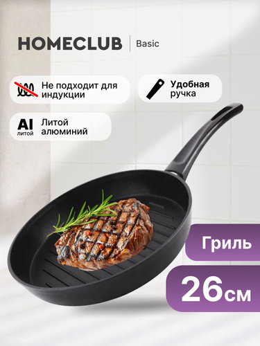 Сковорода гриль антипригарная алюминиевая HOMECLUB Basic 26 см / Круглая сковородка