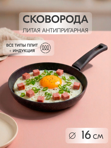 Сковорода для индукционной плиты 16 см с антипригарным покрытием, из литого алюминия